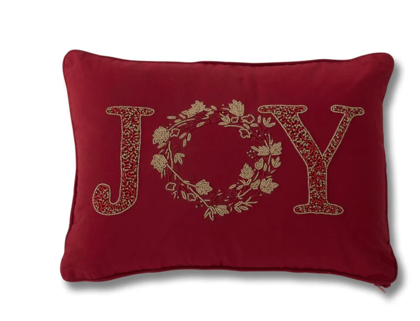 Bring festive elegance to your home with this stunning Red Gold Beaded JOY Lumbar Pillow. Perfect for holiday décor, this rectangular throw pillow features shimmering beaded detailing that catches the light beautifully. The rich red and gold color palette adds warmth and sophistication to any room, while the "JOY" message spreads seasonal cheer. Ideal for sofas, beds, or accent chairs, this decorative pillow transforms your space into a winter wonderland. Create the cozy, celebratory atmosphere your home deserves this Christmas season.