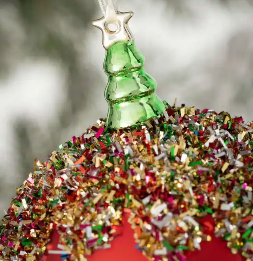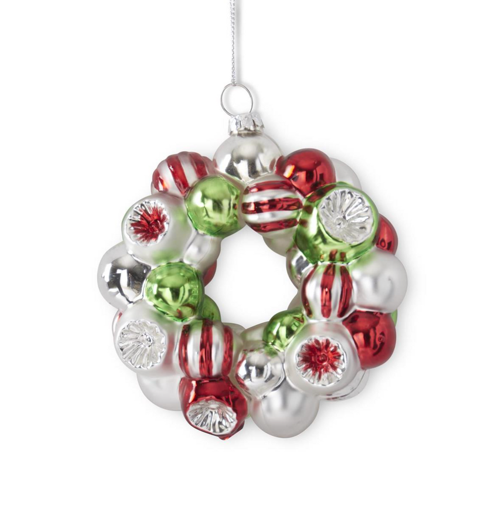 ASSORTED RED SILVER & GREEN GLASS WREATH ORNAMENTS (2 STYLES)